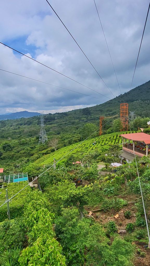 I met up again with the solo traveler from the volcano hike and we took a taxi to Café Albania, nestled in the lush coffee plantations of the Ruta de las Flores, it’s about an hour from Santa Ana. This place is part coffee farm, part adventure park and full-on nostalgia trip.