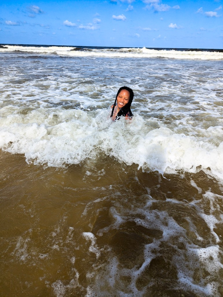As the day eased on, the drive carried us north to Manzanilla Beach, a stretch framed by endless rows of coconut palms swaying gently in the breeze. Unlike Mayaro, where the waves came in strong and frequent, the water here felt noticeably calmer, rolling to shore with a softer rhythm. The sea isn’t the postcard shade of blue but the beach holds its own kind of beauty—wide, rustic, and unpolished in the best way.