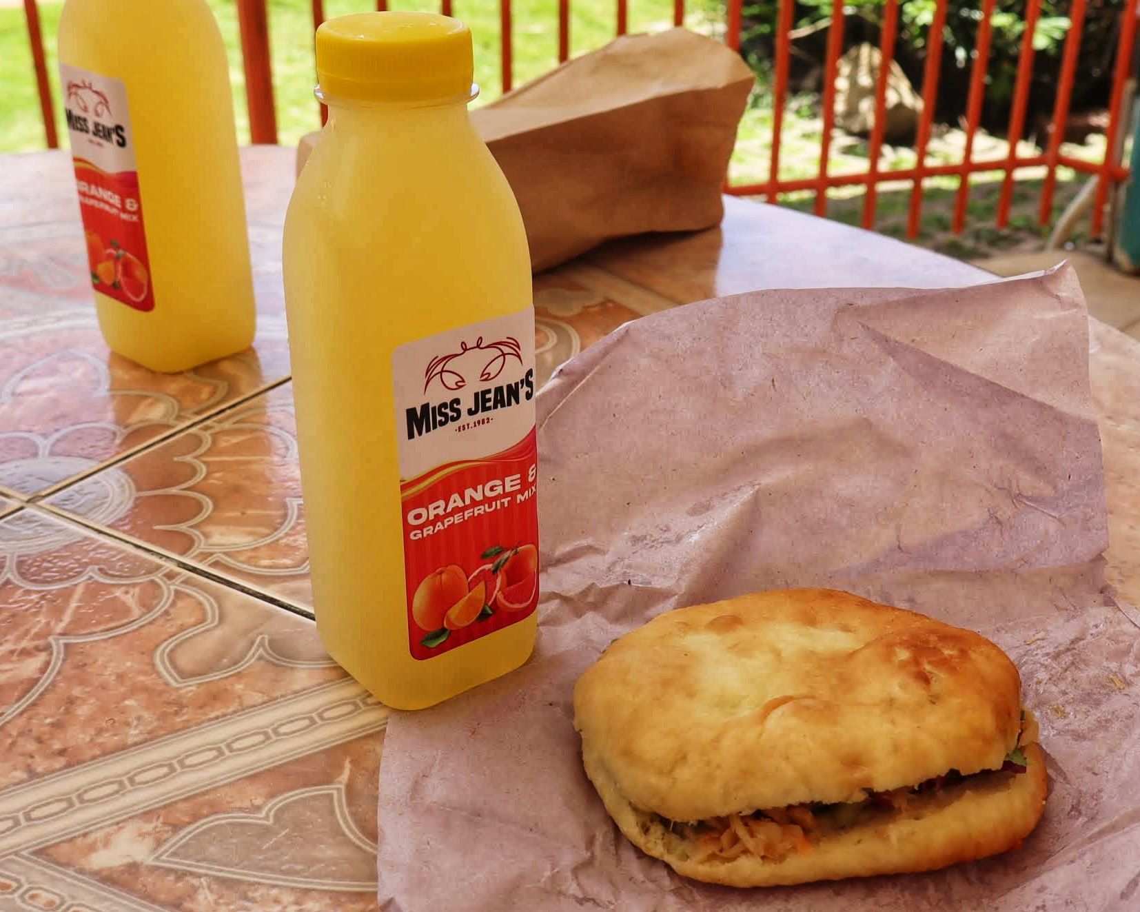 The first stop is Store Bay Beach, just a short walk from Crown Point Airport. Morning hunger is satisfied at Miss Jean’s, the bake and saltfish was just yummy. Golden, warm and filled with boneless salted cod fish, it’s the kind of breakfast that feels both simple and memorable.