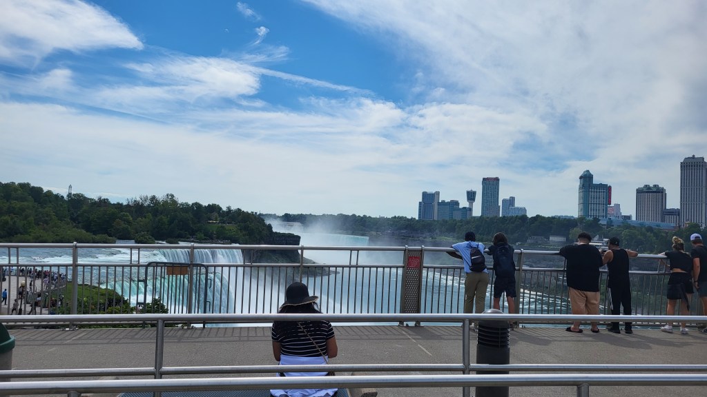 No matter where you walk, the sound of the water follows you. It becomes background noise, then a steady companion. I also had one of those unexpected travel moments, realizing how simple the U.S.–Canada border looks here. The Rainbow Bridge stretched across the river, with people casually walking back and forth, a far cry from the intimidating border-crossing stories we often hear.