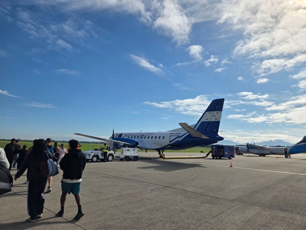 SAP is a small airport with very limited food and shopping options. I arrived early for the 9:30am first departure, grabbed a coffee from a small kiosk and waited it out. If you’re sensitive to noise or boredom, this is a good time to have headphones, a book or downloaded shows ready.